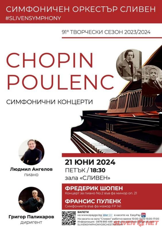 Пианистът Людмил Ангелов, признат за един от най-добрите интерпретатори на Шопен в света, ще изпълни втория му концерт на сливенска сцена. Вечерта ще премине под палката на уважавания български диригент Григор Паликаров.