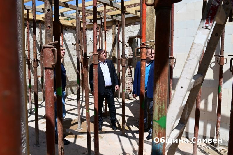 Кметът Стефан Радев се запозна на място с напредъка по ремонта на покрива на сградата на минералните бани. Дейностите са стъпка към бъдещите ангажименти за възраждане на комплекса.