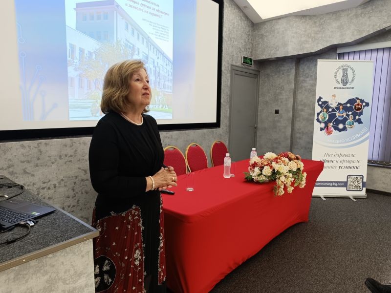 По темата за ключовата роля на специалистите по здравни грижи говори Валентина Русева - председател на Управителния съвет на дружеството на Българската асоциация на професионалистите по здравни грижи в болницата.