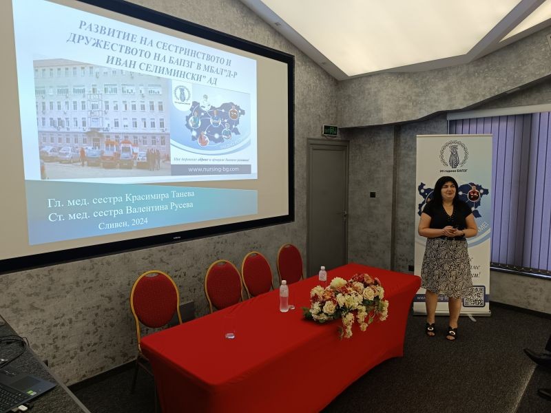 В Сливен се проведе Разширена сесия на тема "Ключова роля на специалистите по здравни грижи в болничната медицинска помощ от минало към настояще, с мисъл за бъдещето“. Събитието беше под патронажа на д-р Васислав Петров - изпълнителен директор на МБАЛ „Д-р Иван Селимински“-Сливен и Управителния съвет на Дружеството на Българската асоциация на професионалистите по здравни грижи към болницата. Сесията беше посветена на 145-та годишнина от създаването на лечебното заведение и 19 години от учредяването на местната структура на асоциацията на професионалистите по здравни грижи, които се отбелязват тази година.