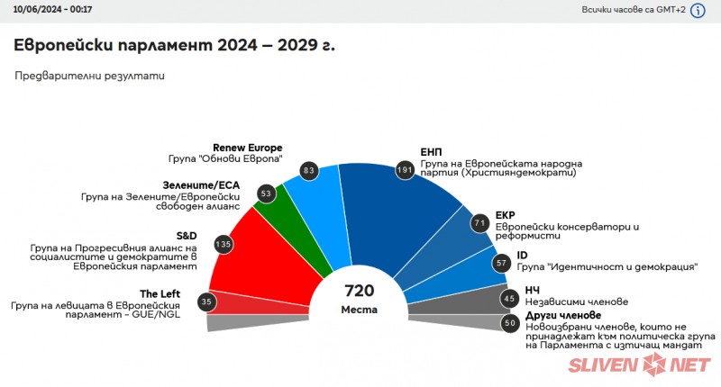 Прогнозите за местата ще продължат да се актуализират и публикуват на https://results.elections.europa.eu/bg/, където ще намерите и националните резултати, местата по политически групи и държави, разпределението по национални партии и политически групи и избирателната активност. Също така ще можете да сравнявате резултатите, да проверявате мнозинствата или да създавате джаджа.
