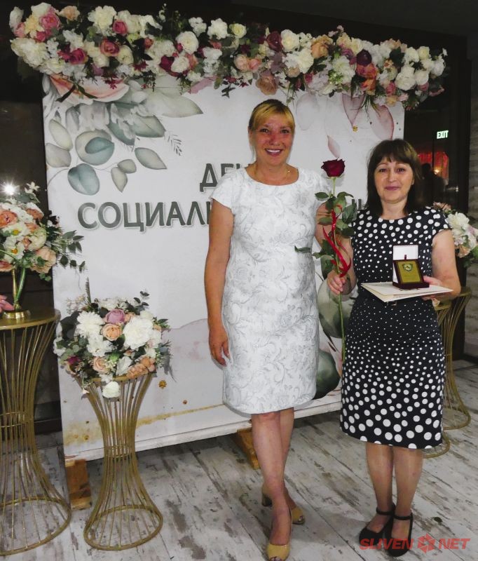 За проявен висок професионализъм в социалната сфера Почетен плакет със знака на Община Нова Загора г-жа Захариева връчи на Иванка Иванова Атанасова - социален работник в отдел „Индивидуални оценки на хора с увреждане и социални услуги“, ДСП – Нова Загора и Димитринка Стоянова Костадинова - социален работник в отдел „Социална закрила“, ДСП – Нова Загора.
