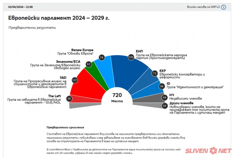Прогнозата се основава на структурата на напускащия Парламент, без да се засяга съставът на новоизбрания Парламент на учредителното му заседание.