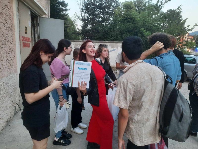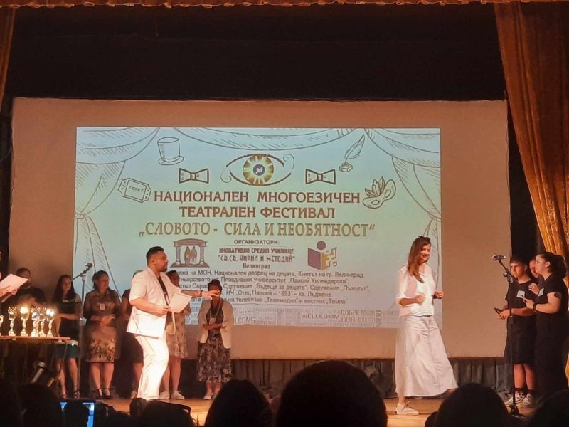 Учениците актьори от театралната ни трупа се завърнаха от участие в многоезичен театрален фестивал „Силата на словото“ със Специалната награда на журито. Възпитаниците на Хуманитарна гимназия показаха класа, стил и индивидуализъм измежду 58 състава от цялата страна. Постановката „Тук се запознах с теб“ предизвика истински фурор сред публиката и журито. Въпреки пречещите обстоятелства (спирането на тока), непосредствено преди началото на представлението, не попречиха на талантливите ни артисти да представят достойно Гимназията. Ако все още не сте гледали спектакъла „Тук се запознах с теб“, имате последна възможност на 21 юни в зала „Зора“, когато трупата ни ще участва в Националния детско-юношески театрален фестивал „Сцена под Сините камъни“ в град Сливен. Ще ви очакваме!