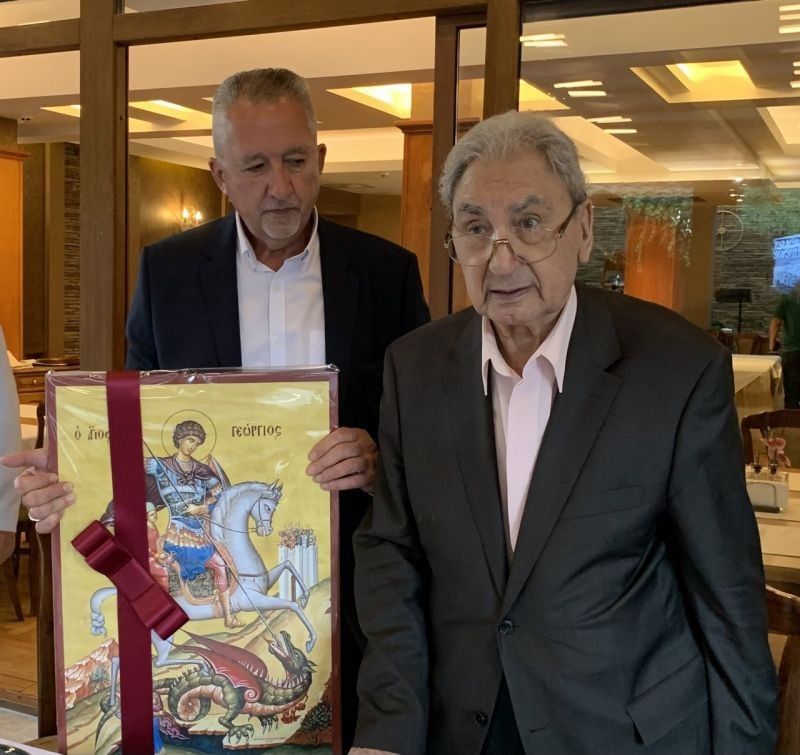 Областният управител Чавдар Божурски подари осветена икона на свети Георги Победоносец на Георги Йорданов по случай неговата 90-годишнина.