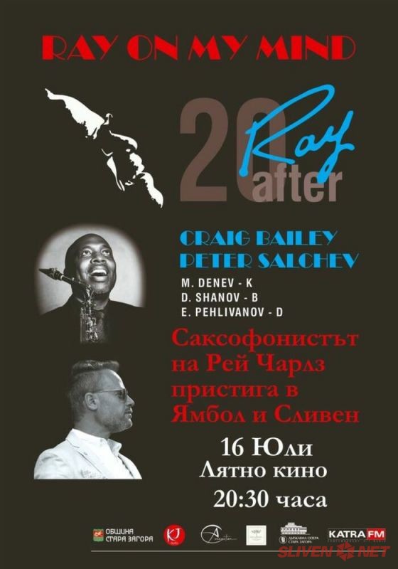 Джаз под звездите и незабравими хитове на Рей Чарлс ще звучат в Ямбол и Сливен на 16 и 17 юли, където ще гостува музикалният проект Ray on My Mind. Той е дело на Крейг Бейли – саксофонист на легендарния Рей Чарлс, и на джаз музиканта Петър Салчев, съобщиха организаторите от Star Productions.