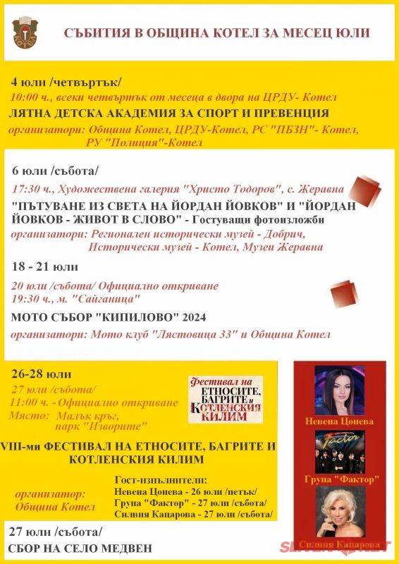 Планирайте своята почивка с нашите събития! Подробна информация ще откриете на официалния сайт на Община Котел – www.kotel.bg и на FB страницата на Туристически информационен център – Котел