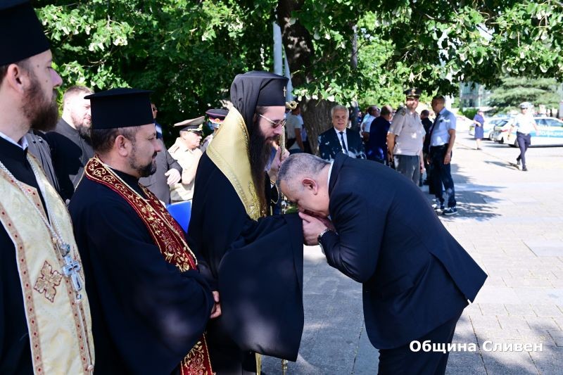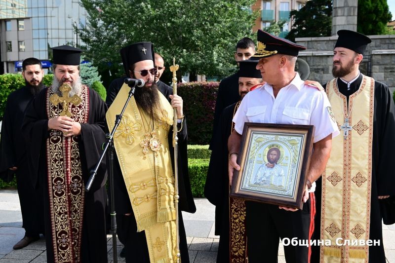 Днешната програма за празника започна с тържествена церемония на пл. „Хаджи Димитър“. Сливенският митрополит - Негово Високопреосвещенство Арсений отслужи молебен за здраве. По повод празника Владиката връчи на Областната дирекция на МВР икона на Исус Христос.