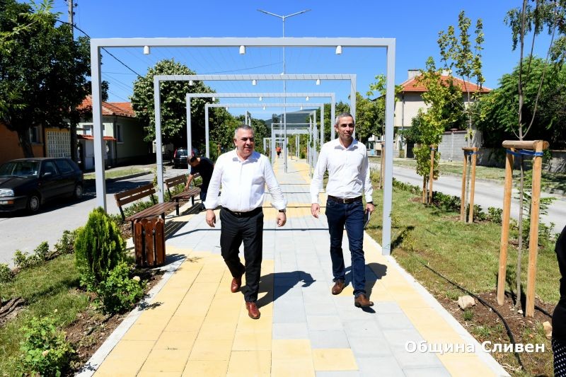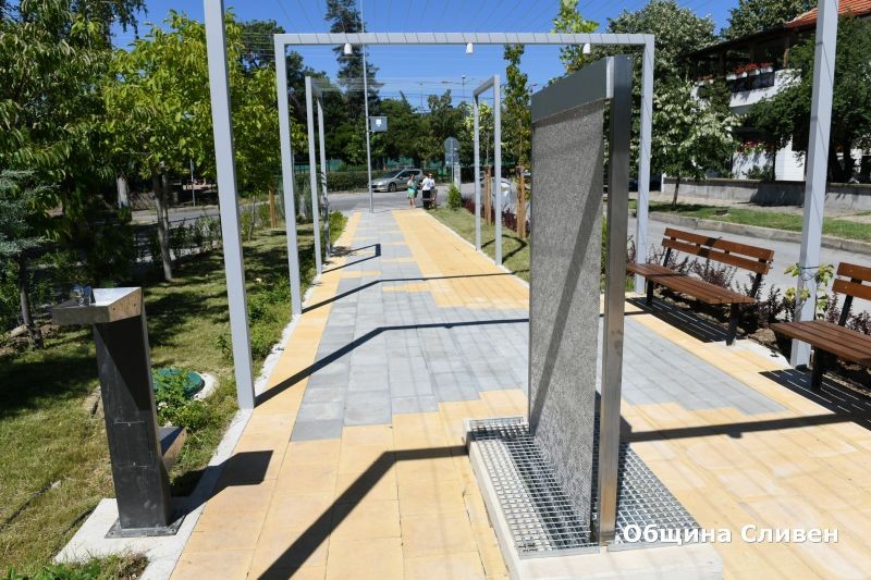 Община Сливен започна изпълнението на пилотния проект за адаптация към изменението на климата в края на октомври 2023 година. Целта на проекта е да се облагороди околното пространство чрез изграждане на нова зелена инфраструктура. Той съчетава редица мерки за адаптация и смекчаване към климатичните промени, обособяване на зони за борба със затоплянето в градска среда и така наречения ефект на „топлинния остров“. По цялата дължина на алеята са монтирани нови пейки за отдих, изградени са водни стени, поставени са нови кошчета за отпадъци, изградена е система за капково напояване на растителността.