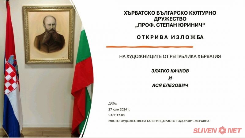 На 27 юли /събота/ в Художествена галерия “Христо Тодоров” село Жеравна ще бъде открита изложба посветена на Културните взаимоотношения през годините на Република Хърватия и Република България. Организатори на събитието са Хърватско-Българското културно Дружество “Проф. Степан Юрнич” и Исторически музей-Котел. Изложбата ще представи картини на известните художници от Хърватия- Ася Елезович и Златко Качков. Представянето на събитието ще бъде в сградата на Художествена галерия “Христо Тодоров ” село Жеравна от 17 часа на 27 юли.
