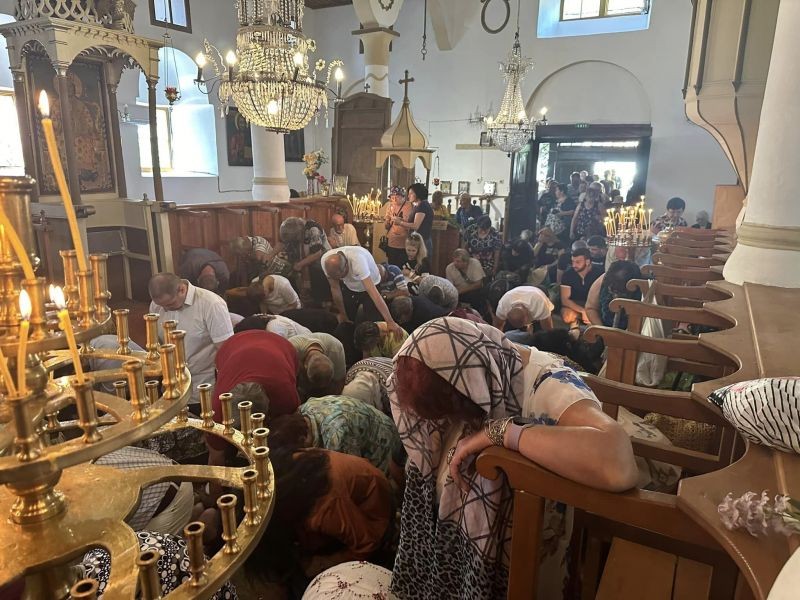 След светата Литургия бе отслужена и празнична вечерня, по време на която при запяването на Великия прокимен “Кто Бог ве́лий” митрополит Арсений разхвърли из храма орехова шума – символ на Светия Дух, слязъл във вид на огнени езици върху светите апостоли, и прочете първата коленопреклонна молитва.