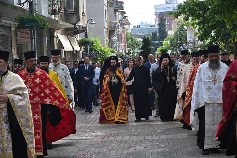 С литийно шествие от арката на св. Николай Чудотворец под звуците на духовия оркестър и църковни песнопения владиката, духовниците и гостите се отправиха към площада пред катедралния храм "Свв. Кирил и Методий", където кметът на града г-н Димитър Николов и областния управител на Област Бургас проф. Мария Нейкова приветстваха новия митрополит, който от своя страна отправи архипастирски благослов към родолюбивите жители на гр. Бургас.