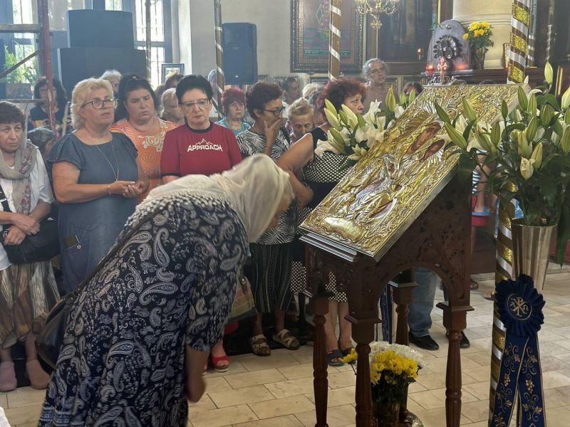 Поклонението пред Чудотворната икона на Света Богородица "Пътеводителница" в храма продължи до късно вечерта.