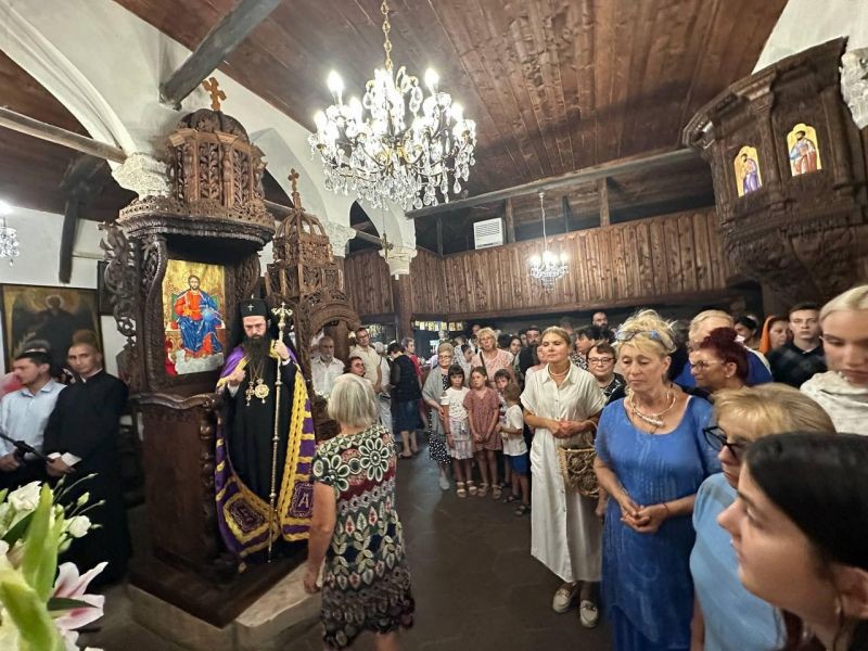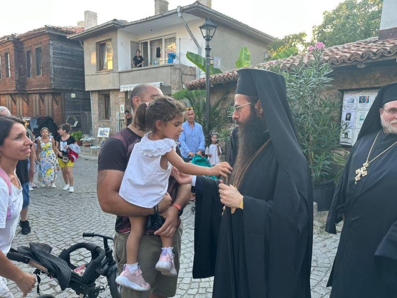 Негово Високопреосвещенство Сливенският митрополит Арсений отслужи вечерня с Молебен канон към Пресвета Богородица в храм "Успение Богородично" в град Созопол.