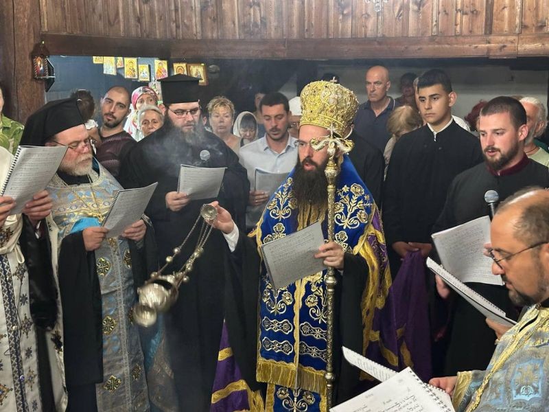 В края на службата митрополит Арсений се обърна със слово за Пресвета Богородица, която изпълва сърцата ни с радост и прикани всички да Й подражават в кротост и смирение.