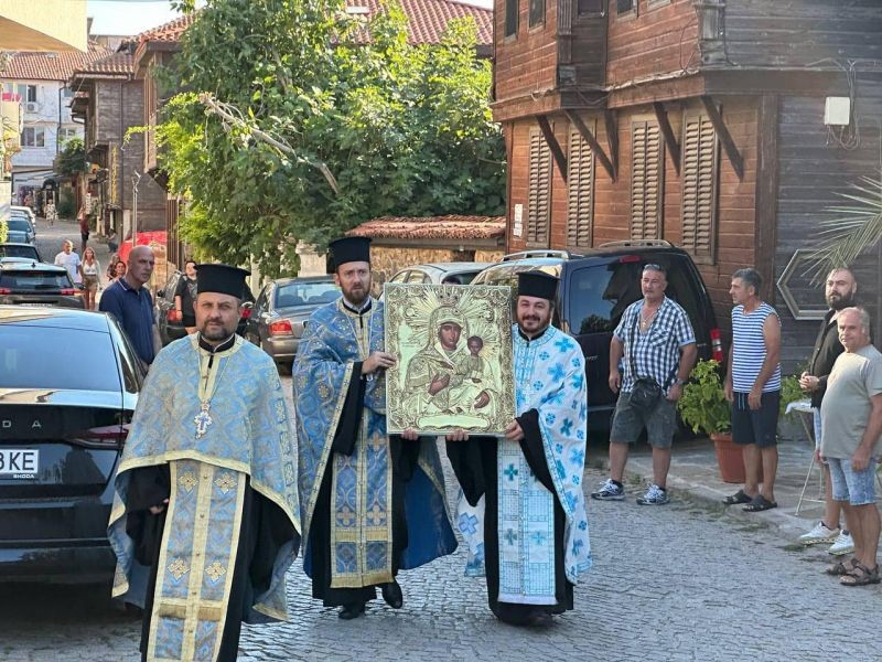 Негово Високопреосвещенство Сливенският митрополит Арсений отслужи вечерня с Молебен канон към Пресвета Богородица в храм "Успение Богородично" в град Созопол.