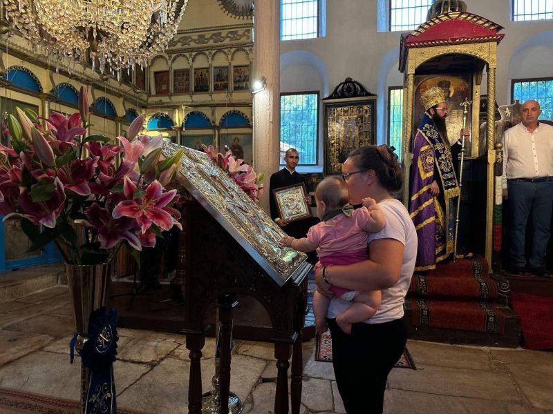 Поклонението пред Чудотворната икона на Пресвета Богородица "Пътеводителница" в храма продължи до късно вечерта.