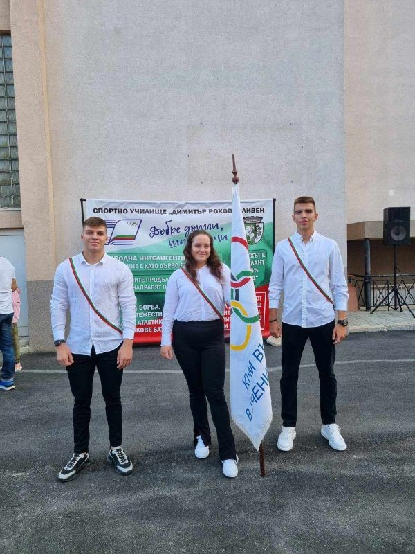 По традиция в първия ден на всяка нова учебна година в СУ "Д. Рохов" най-добрите спортисти издигат националния флаг. Днес тази чест бе отредена на бронзовият медалист по вдигане на тежести от Олимпиадата в Париж 2024 Божидар Андреев, бивш възпитаник на училището, с треньор Пламен Братойчев.