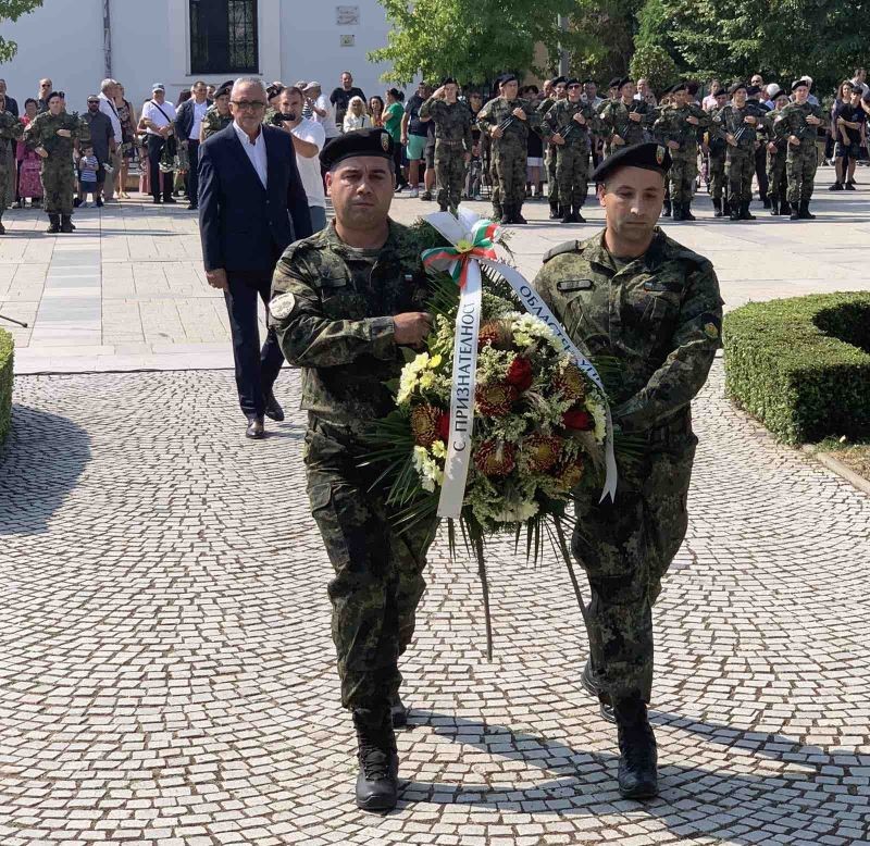 Областният управител, заедно с кмета Стефан Радев и полковник Делян Люцканов, началник щаб на военно формирование 22 220, се включи в ритуала по тържественото издигане на националното знаме на Република България.