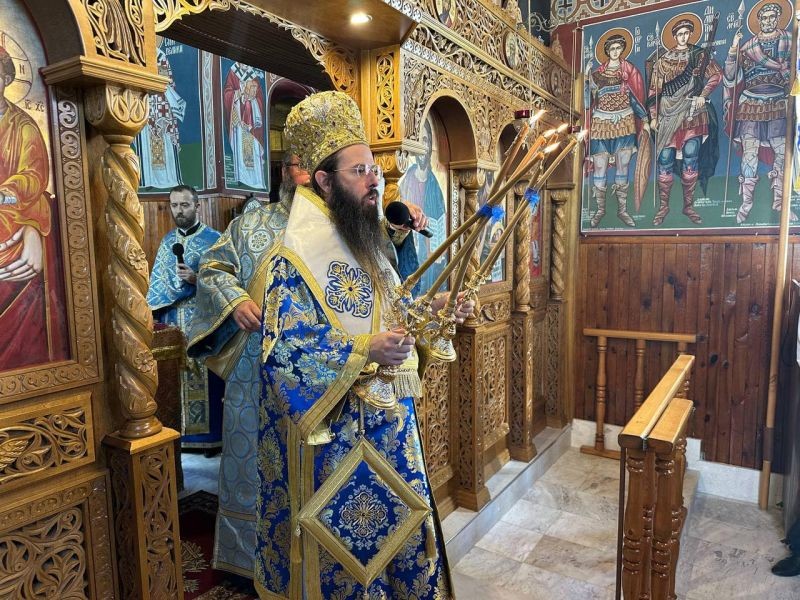 В края на Литургията митрополит Арсений поздрави всички с празника и се обърна с празнично слово за Пресветата Дева.