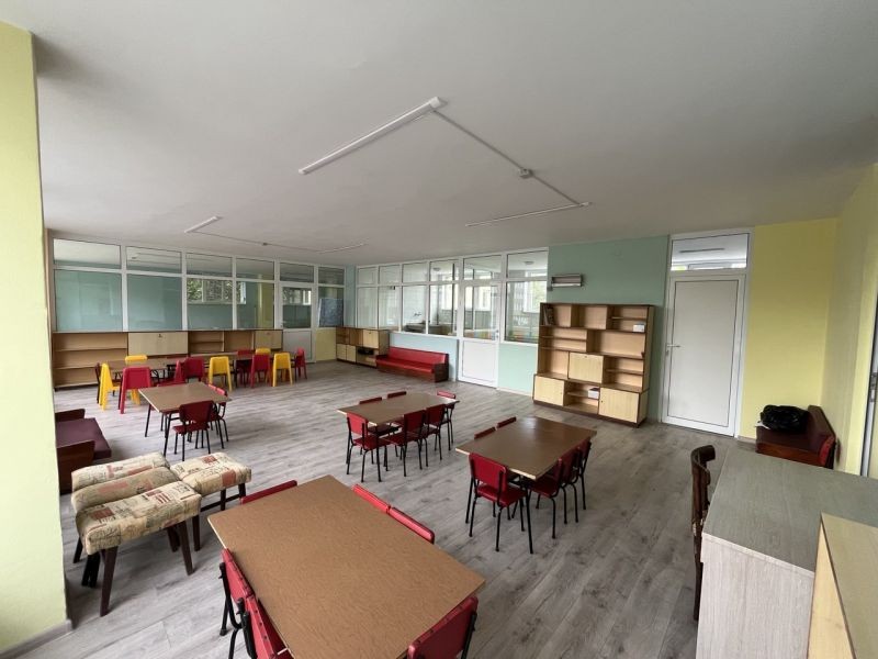 При ремонта са подменени вътрешните дървени прегради с PVC. Сменени са настилките – ламинирани плоскости и теракота, осветителни тела, фаянсови облицовки, мивки, тоалетни гърнета. Шпакловани и боядисани са стени и тавани.