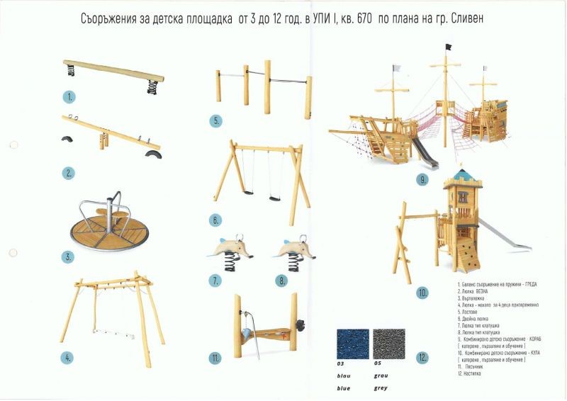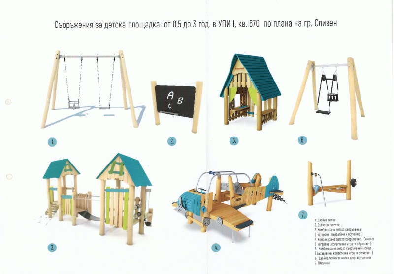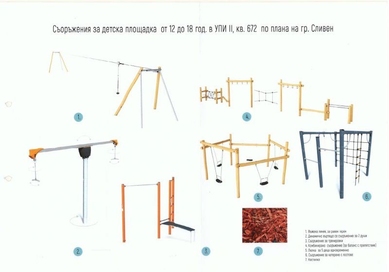 Дейностите предвиждат още монтаж на нови съоръжения за игра с конструкция от висококачествени акациеви стволове с изцяло неръждаеми обкови и крепежи. Всички елементи ще отговарят на приетите стандарти и безопасни за децата.