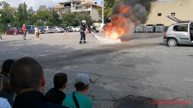 Младши инспектор Димитър Илиев от РСПБЗН-Сливен запозна присъстващите с техниките, материалите и методите за гасене на пожари от различни източници. Децата получиха награди и книжки с полезни съвети при излет в планината и пикник с родителите.