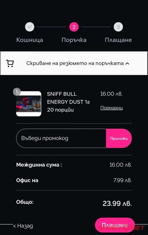 След направена днес, 14.09.2024 г., поръчка на единия от двата забранени продукта през сайт с разширение .com и с българска езикова версия, на имейла се получава следното съобщение: “Вашата заявка беше получена и очаква да бъде обработена след потвържедение за плащане”.