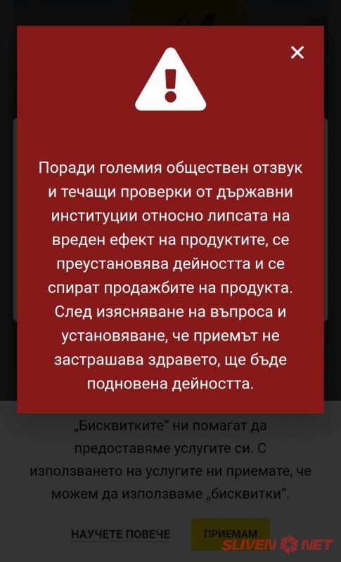На собствения сайт на единия продукт с домейн с разширение .bg пише “изчерпана наличност”, а на другия, също с разширение .bg – “след изясняване на въпроса и установяване, че приемът не застрашава здравето, ще бъде подновена дейността”. Това внушава наличието на силен интерес към продуктите и претенция за безопасност. Същевременно те могат да бъдат открити на интернационални платформи, включително с версии на български език. Така на практика към момента българските сайтове рекламират визираните продукти и създават усещането за дефицит, с което изпращат потребителите към междунарони платформи, които са на два клика разстояние, тревожат се от “Ние, потребителите”.