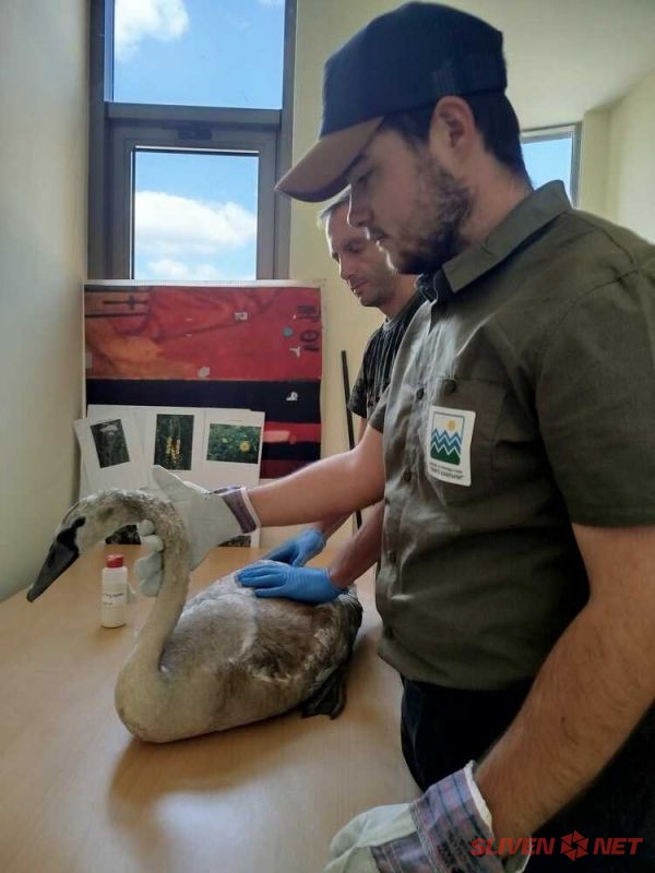 От Дирекцията на Природен парк "Сините камъни" съобщиха, че нейни експерти са извършили преглед на птицата и са установили, че тя е в добро състояние. Лебедът ще бъде освободен на подходящо за него място, посочиха от природния парк.