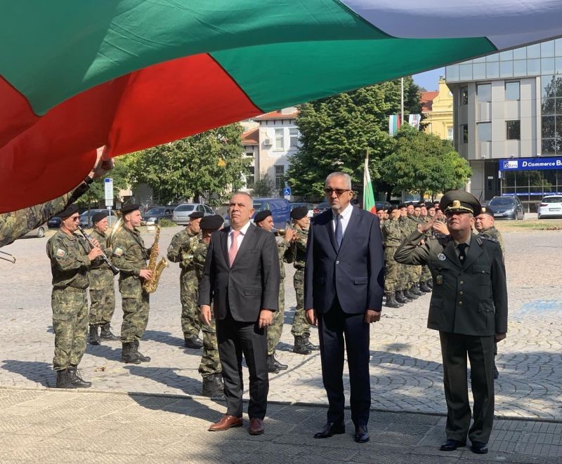 Областният управител, заедно с кмета Стефан Радев и полковник Любомир Вачев - началник на гарнизон Сливен, се включи в тържественото издигане на националното знаме на Република България.