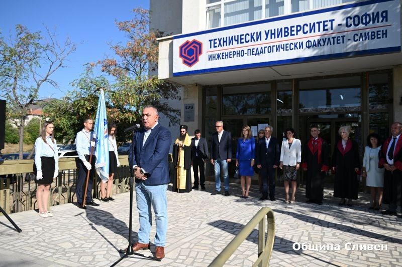Обединената структура на софийския Технически университет – „Факултет и Колеж – Сливен“ днес отвори врати за началото на академичната година. Дворът на образователната институция се изпълни със студенти, техните семейства и официални гости.