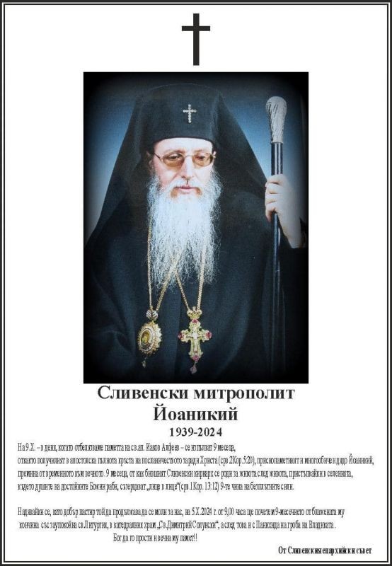 На 9 октомври се навършват девет месеца от кончината на блаженопочиналия Сливенски митрополит Йоаникий