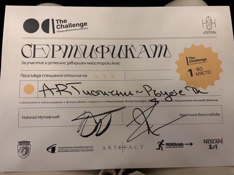 Театралната трупа на Хуманитарната гимназия участва в майсторски клас с 24-часово предизвикателство за създаване на късометражен филм с ментори, изявени в българското кино, актьори, режисьори, оператори и продуценти. Учениците актьори се впуснаха в състезанието с оригинални идеи, перфектна екипна работа и хъс за победа. Наградите не закъсняха, след представянето на филмите на всички участници, „Опит за летене“ грабна първата награда – ваучер за 1000 лв. и възможността да се включи в следващия кръг на национално ниво в гр. София, в който нашите възпитаници ще се състезават с други 13 отбора от цялата страна. Поздравяваме театралната трупа и й пожелаваме още много успехи! С радост споделяме и наградения филм.