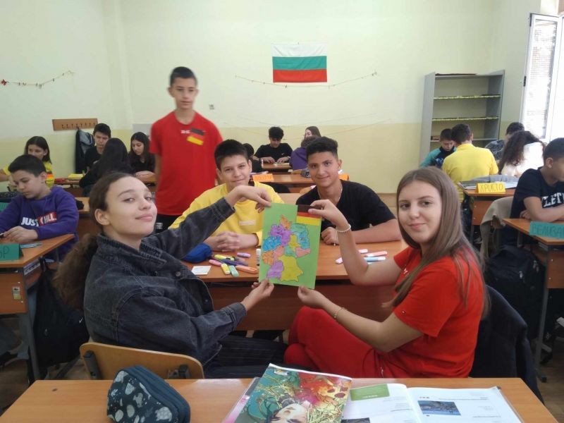 Осмокласниците от немските паралелки отбелязаха 3 октомври- Денят на Обединена Германия. В работа по групи учениците успяха да подредят пъзел на географската карта на Германия, а всеки от тях си изработи табелка със символите на немския флаг. За празничното настроение се облякоха в черни, червени и жълти тениски!