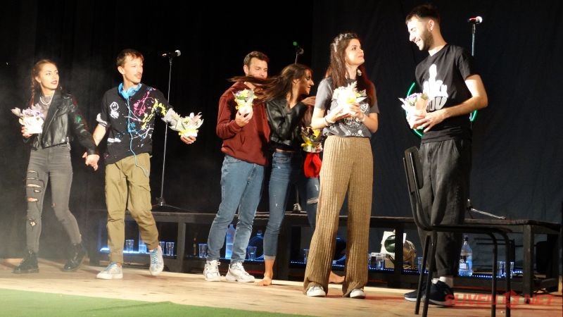 Увлекателната игра на актьорите от Драматичен театър „Търговище“ докосна сърцата на младежката публика, която ги дари с ентусиазирани аплодисменти.