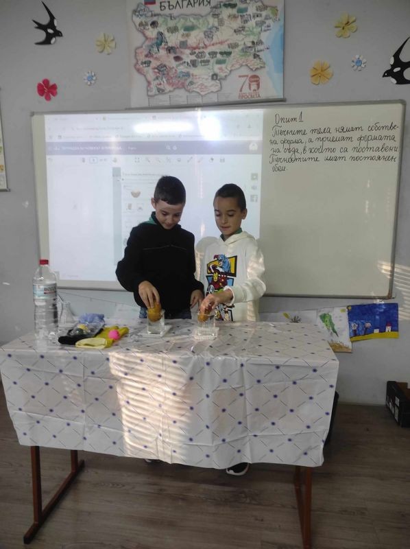 В час по Човекът и природата третокласниците се превърнаха в истински малки учени, като проведоха серия от вълнуващи експерименти, които доказаха някои основни свойства на материалите и веществата.