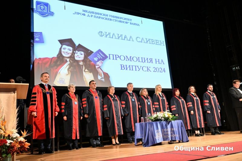 Осмият випуск на Филиал Сливен на Медицински университет „Д-р Параскев Стоянов“ - Варна днес се дипломира тържествено. Зала „Сливен“ се изпълни с гости, академичното ръководство на медицинския университет, преподаватели, бивши и настоящи студенти, дошли за официалната церемония.