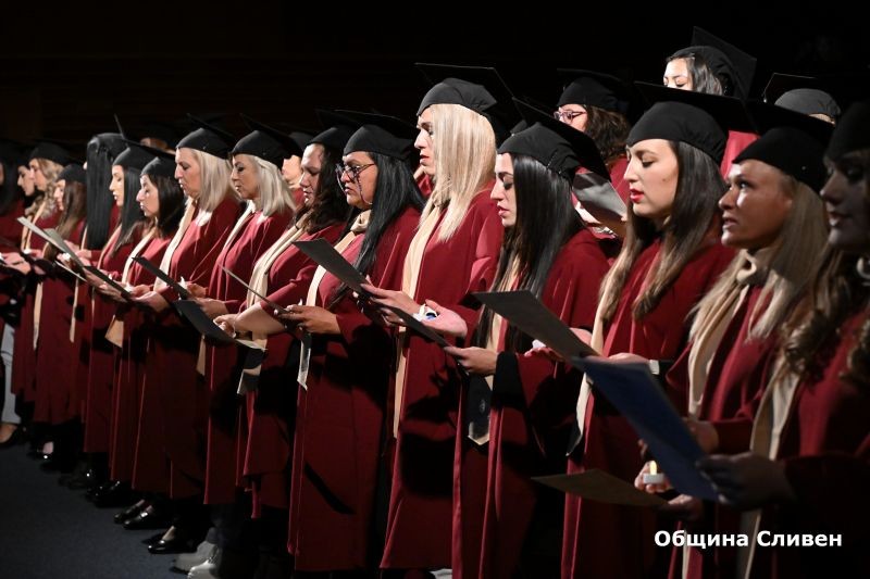 Дипломите си за завършено висше образование - степен „Бакалавър“, получиха 26 студенти от специалност „Медицинска сестра“ и 13 от специалност „Акушерка“. Заедно те произнесоха клетвата на Флорънс Найтингейл - английска милосърдна сестра, писател, статистик. Тя поставя основите на професионалното сестринство, като открива първото светско училище за сестри в света. Всички отличници от випуска получиха парични награди от името на кмета на община Сливен Стефан Радев и от ректора на медицинския университет във Варна. Предметни награди от кмета и от ректора на университета получиха всички абсолвенти.