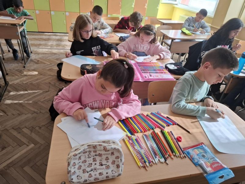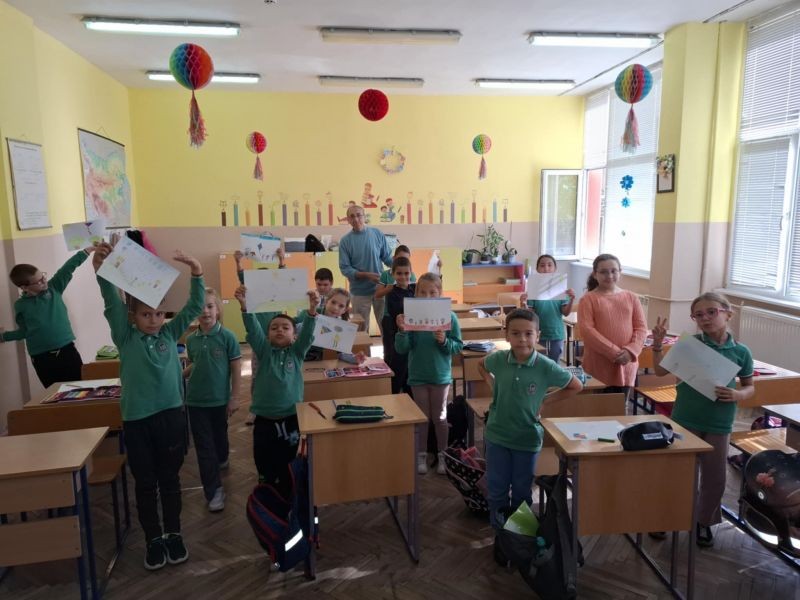 Учениците от 1. А, 2. А, 2. Б и 4. А се включиха в инициативата ,,Нарисувай песен", организирана от Младежки дом- Сливен под ръководството на Борис Беленски.