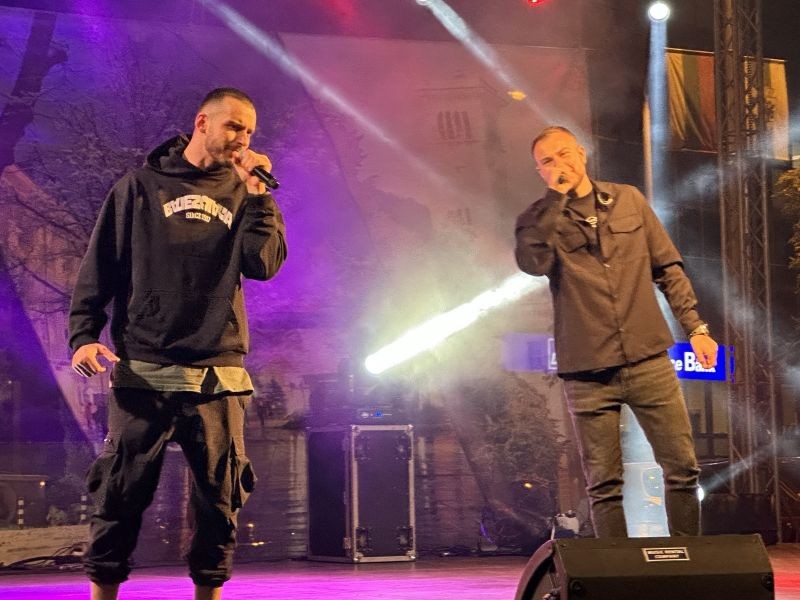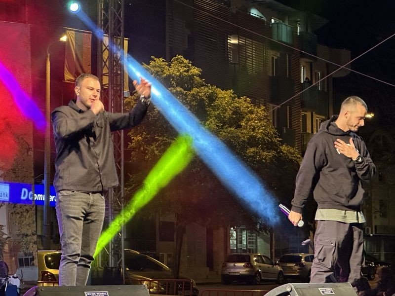Първо на сцената излязоха младите изпълнители, които изпяха любими на почитателите им парчета от техния репертоар. Момчетата поздравиха сливналии за предстоящия празник и благодариха на Общината за поканата. От своя страна публиката изпрати изпълнителите с бурни аплодисменти.