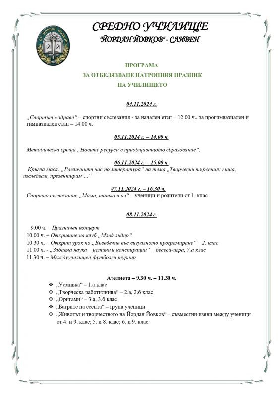 Имаме удоволствието да Ви поканим на изявите, посветени на празника на училището.