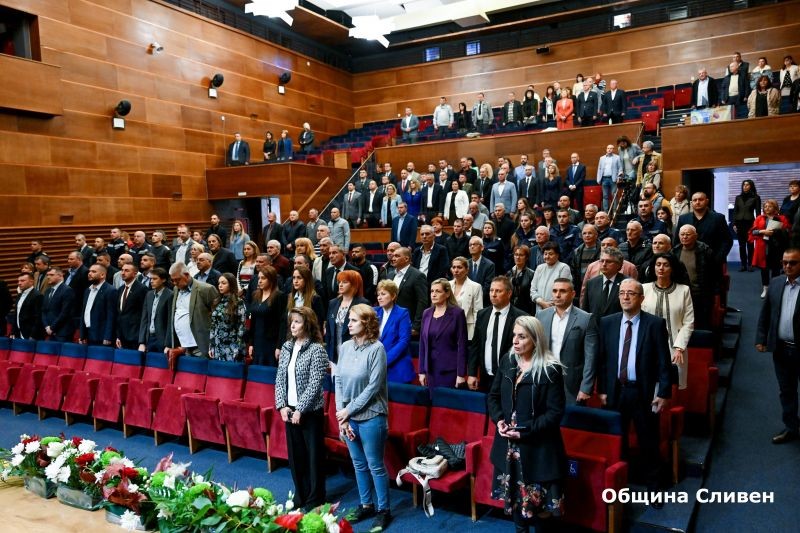 Гостите, изпълнили зала „Сливен“ днес, посрещна и поздрави председателят на Общинския съвет Димитър Митев. От сцената на залата той сподели, че всеки празник, освен повод за радост, е и повод за размисъл. За успехите, за неуспехите, за поставените и постигнати цели.