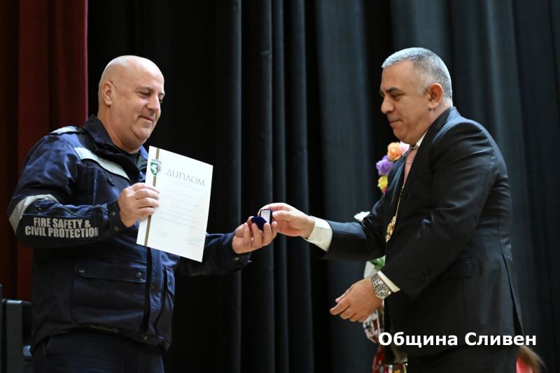 За висок професионализъм в работата и висока гражданска отговорност с грамота и значки на Община Сливен бяха удостоени служители на ОДМВР-Сливен, на пожарната, лекари, медицински сестри, читалищни дейци и доброволци от формирования „Железни врата“ и „Грамадите“.