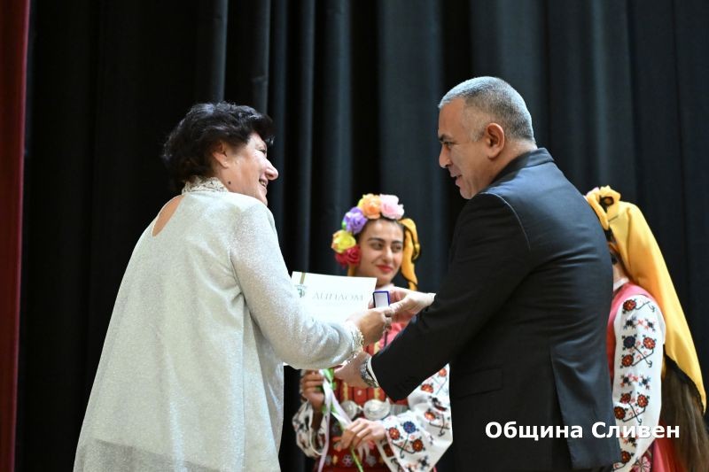 Гостите, изпълнили зала „Сливен“ днес, посрещна и поздрави председателят на Общинския съвет Димитър Митев. От сцената на залата той сподели, че всеки празник, освен повод за радост, е и повод за размисъл. За успехите, за неуспехите, за поставените и постигнати цели.