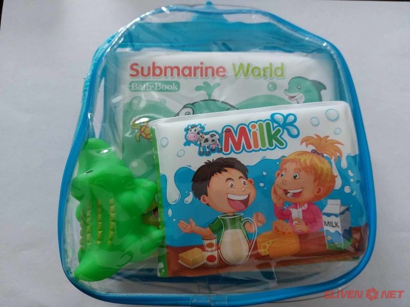 Отново химически са и рисковете при детски комплект играчки за баня с меки пластмасови книжки и пластмасова фигурка на крокодил. Пластмасовият материал има прекомерна концентрация на фталат с измерени стойности до 16,9%, поради което продуктът не съответства на регламента REACH. Фталатът може да причини увреждане на репродуктивната система. Изделието идва от Китай, а опасността е установена в Полша. Може да се идентифицира от потребителите по номера на модела A550 и баркода 5902496180349.