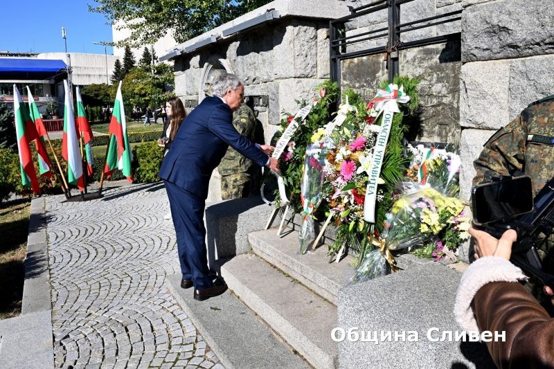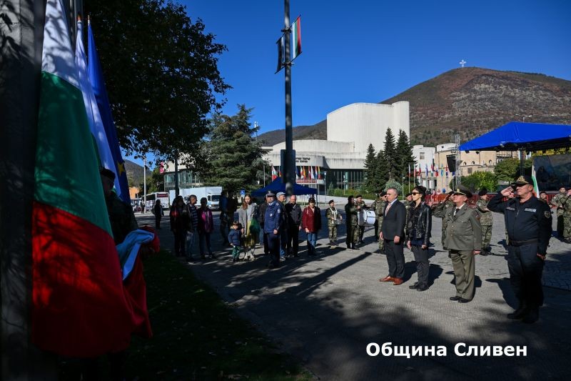 Днешното топло и слънчево време допринесе за празничното настроение, което обхвана жителите и гости на Сливен, уважили общоградската тържествена церемония на площад „Хаджи Димитър“. Тя започна с ритуал по издигане на националното знаме на Република България, знамето на Сливен и знамето на Европейската общност.