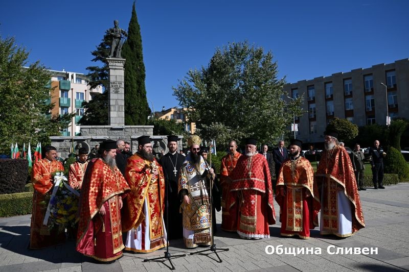 Церемонията на площада продължи с молебен за благополучие на Сливен и неговите граждани, отслужен от Негово Високопреосвещенство сливенския митрополит Арсений.
