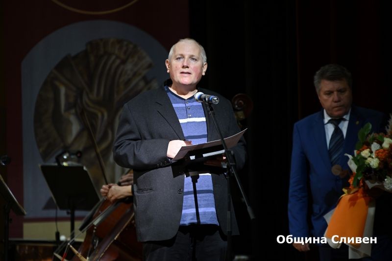 От сцената на залата гостите, уважили събитието, приветства кметът Стефан Радев. Той изрази радостта си, че има възможност да сподели празничната вечер с присъстващите. Градоначалникът отново подчерта, че най-голямото богатство на Сливен са хората.