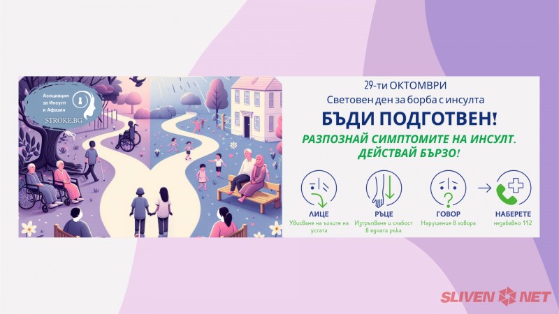 Днес, 29 октомври 2024 г., Асоциацията за инсулт и афазия (АИА) стартира националната кампания „Бъди подготвен! Разпознай симптомите на инсулт. Действай бързо!“. Инициативата се провежда по повод Световния ден за борба с инсулта и цели да повиши информираността за основната причина за смърт и инвалидизация в страната – инсулта.